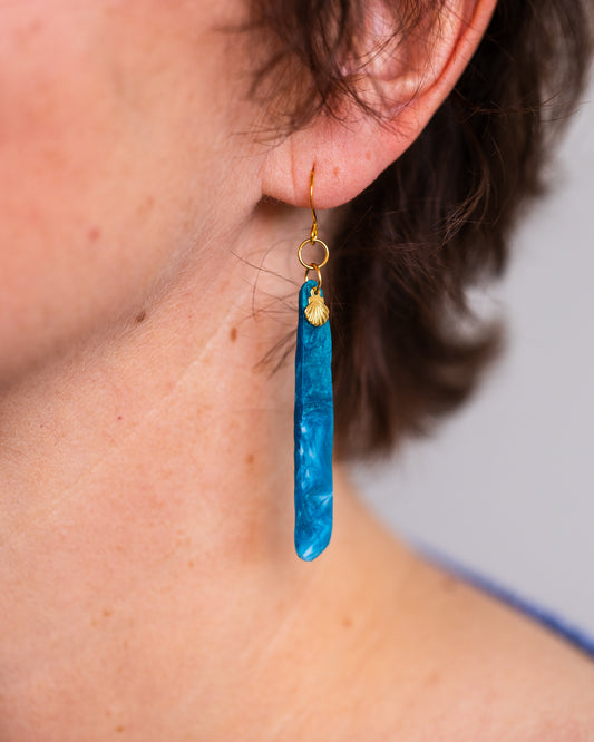 Ocean-Inspired Resin Earrings with Gold seashells – Handcrafted in Australia