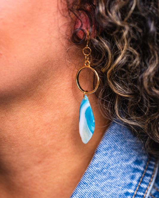 Blue & Gold Gold-Plated Ocean Drop Earrings – Handcrafted Resin Jewellery