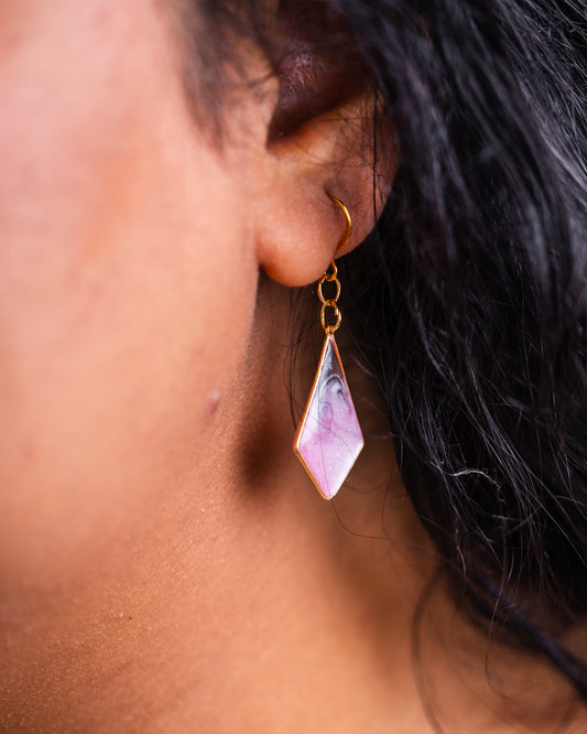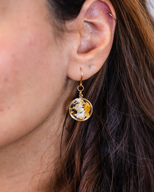 Gold-plated ocean Resin Earrings with Pearlescent Swirls – Handmade Statement Jewellery