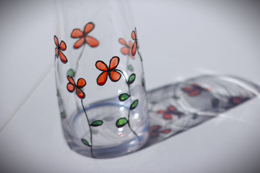 Vase en verre peint à la main personnalisé avec des fleurs rouges