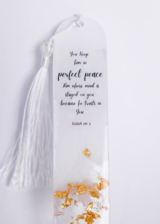 White and Gold Resin Bookmark – Elegant Handmade Gift