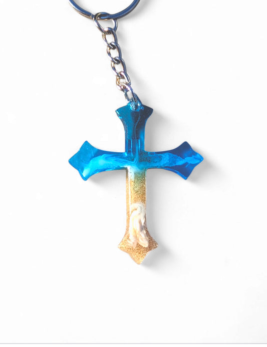 Porte-clés en forme de croix faits main sur le thème de l'océan