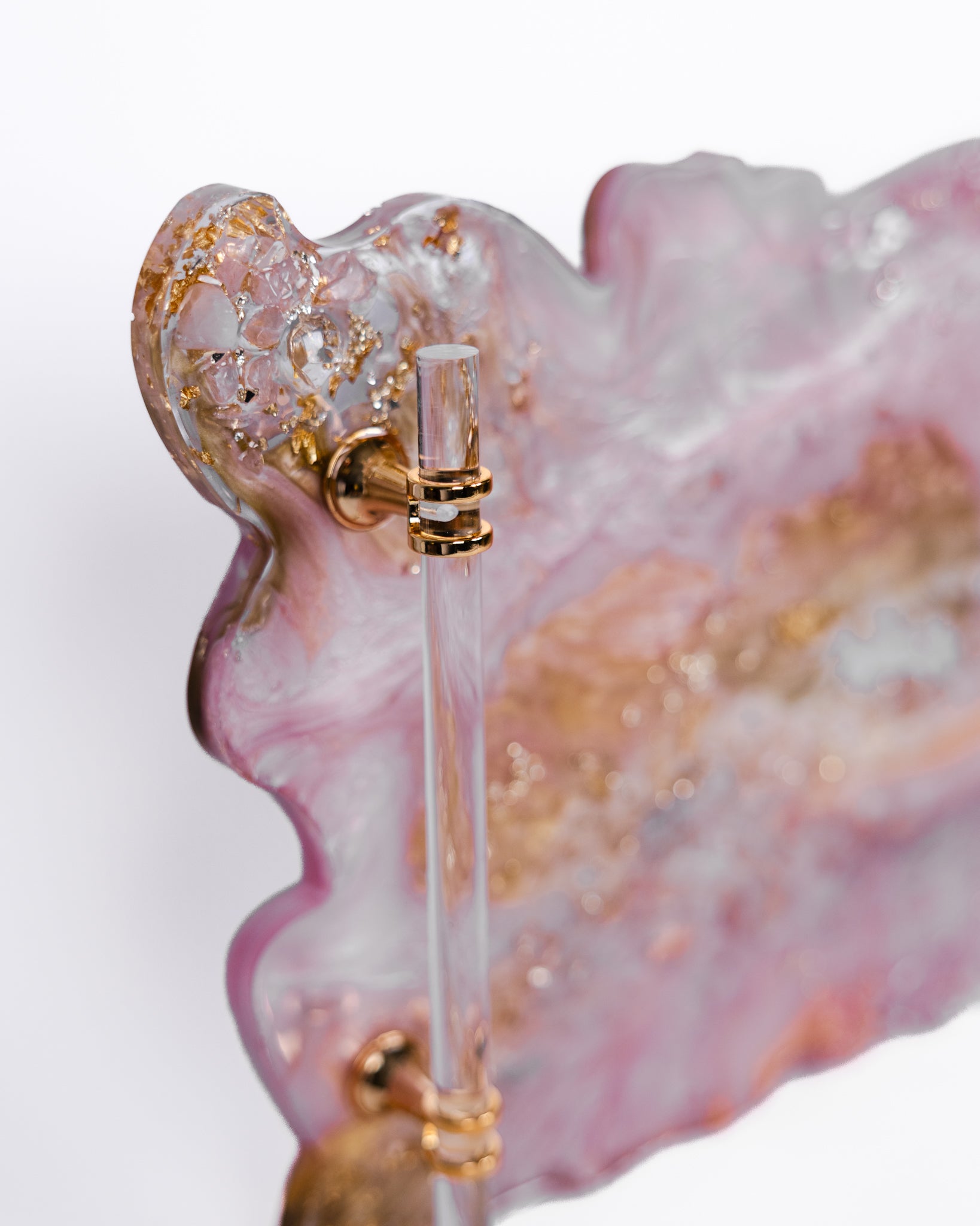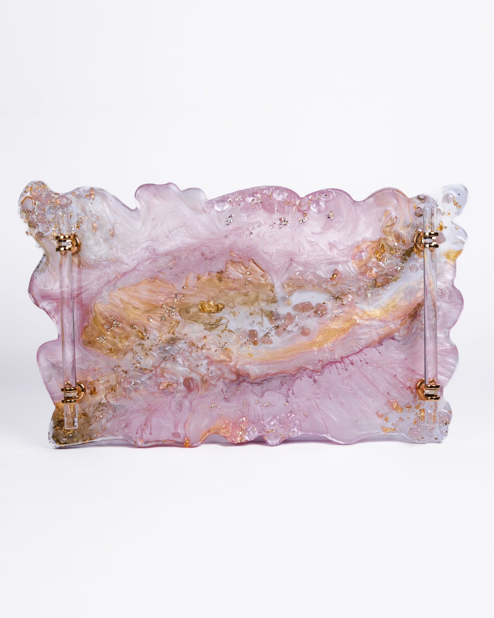 Ajoutez une touche d'élégance et de beauté à votre décoration intérieure avec notre ensemble en résine fabriqué à la main. La combinaison unique de couleurs de cristaux roses et transparents en fait un produit vraiment unique en son genre. Fabriqué avec de la résine époxy de haute qualité, cet ensemble est durable, résistant à l'eau et sans danger pour les aliments et le contact. Parfait pour les cadeaux de pendaison de crémaillère, personnels ou de demoiselle d'honneur.