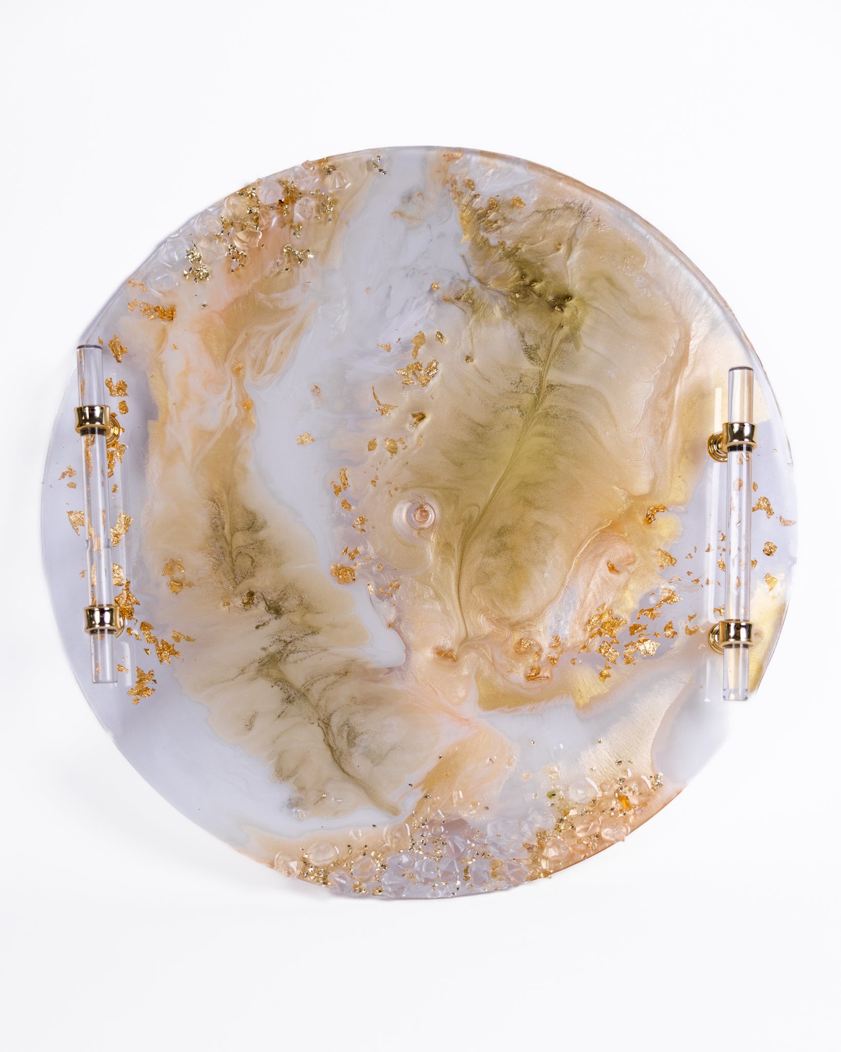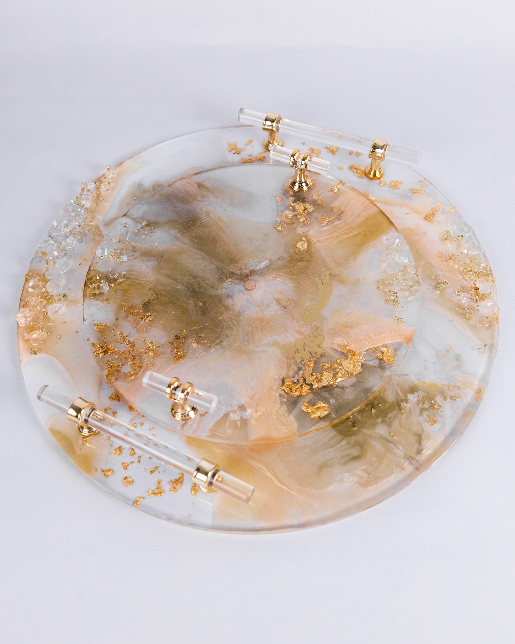 Ensemble de plateaux de service et de sous-verres en résine personnalisés faits à la main de couleur rose pâle