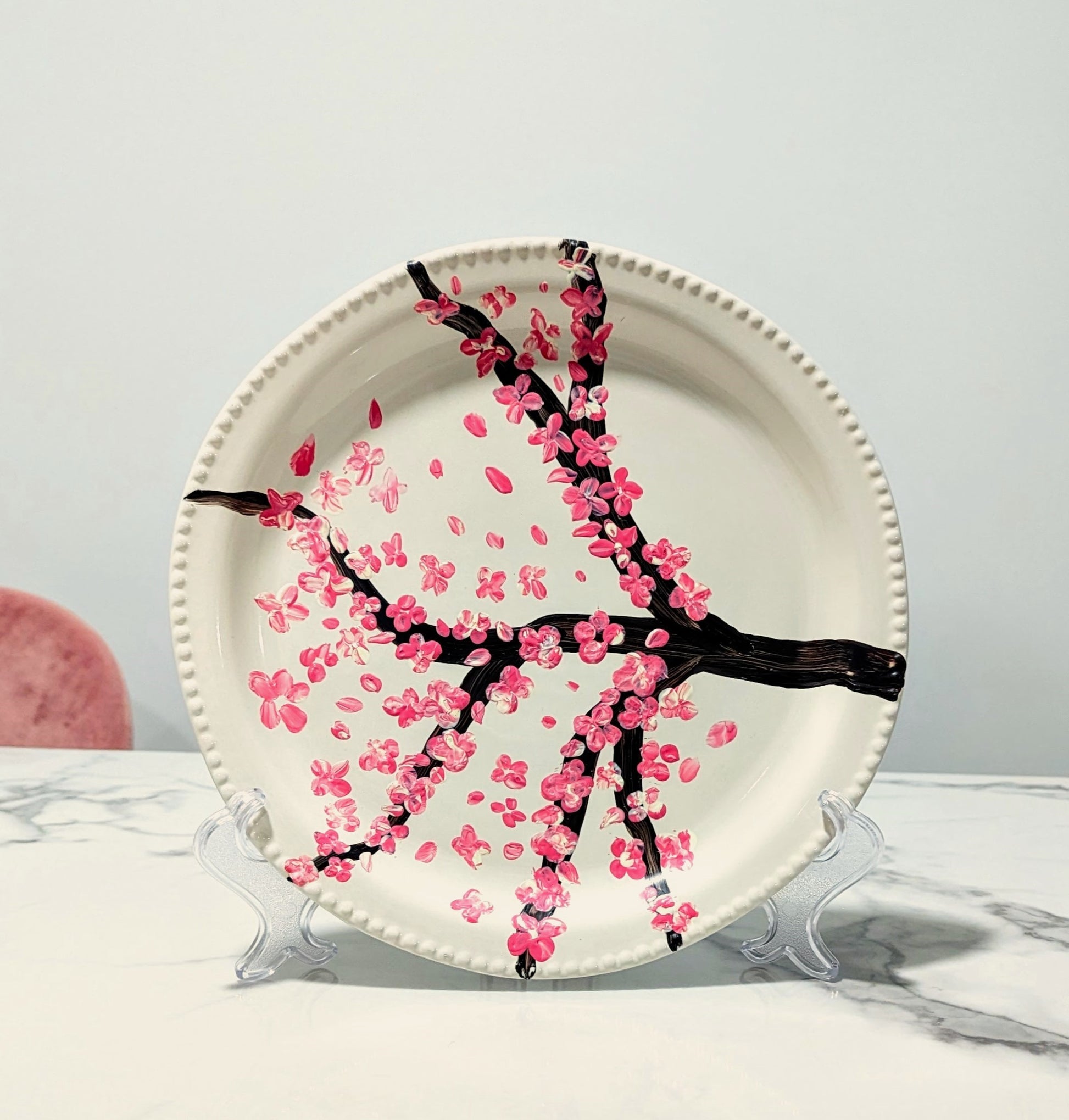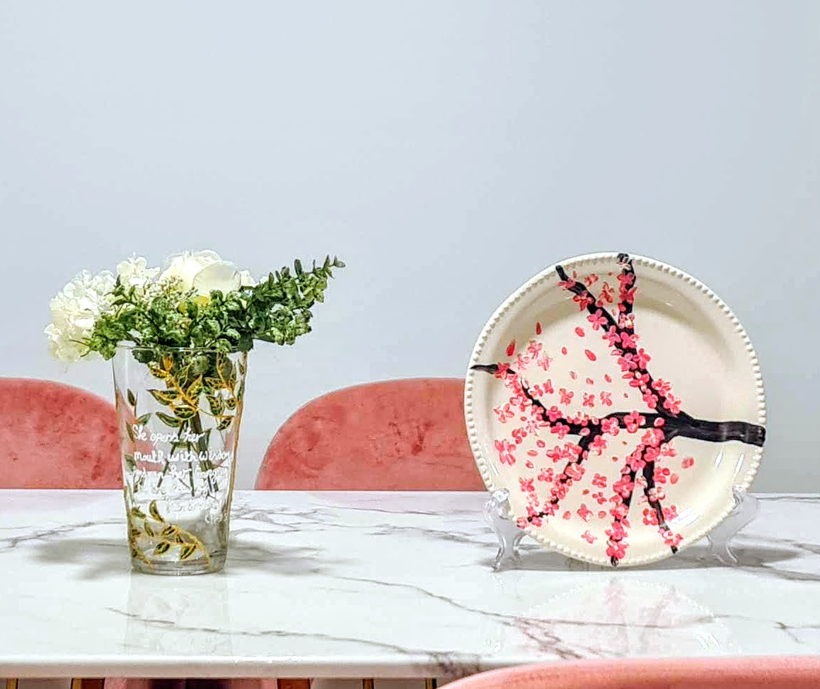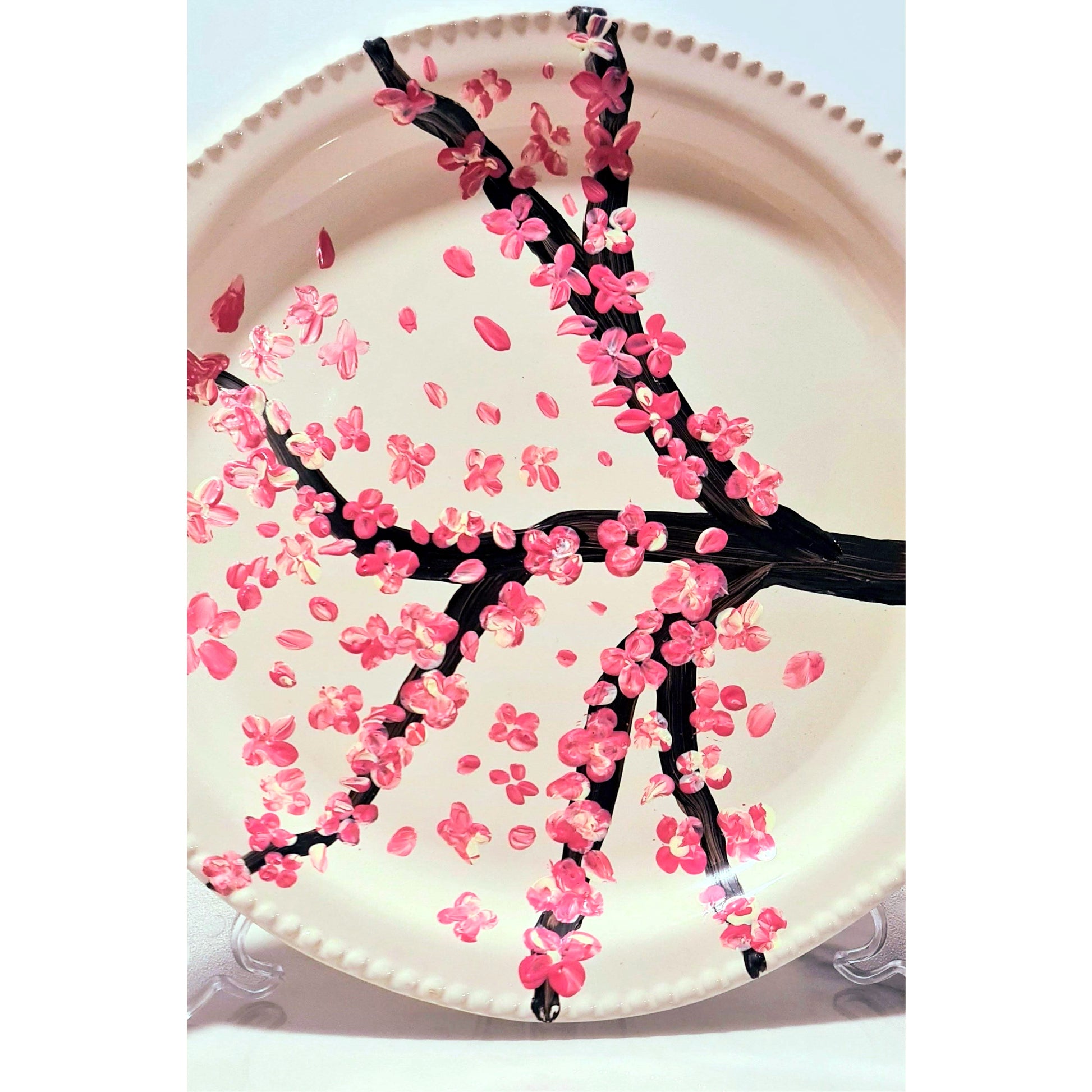 Assiette décorative personnalisée peinte à la main avec des fleurs de cerisier