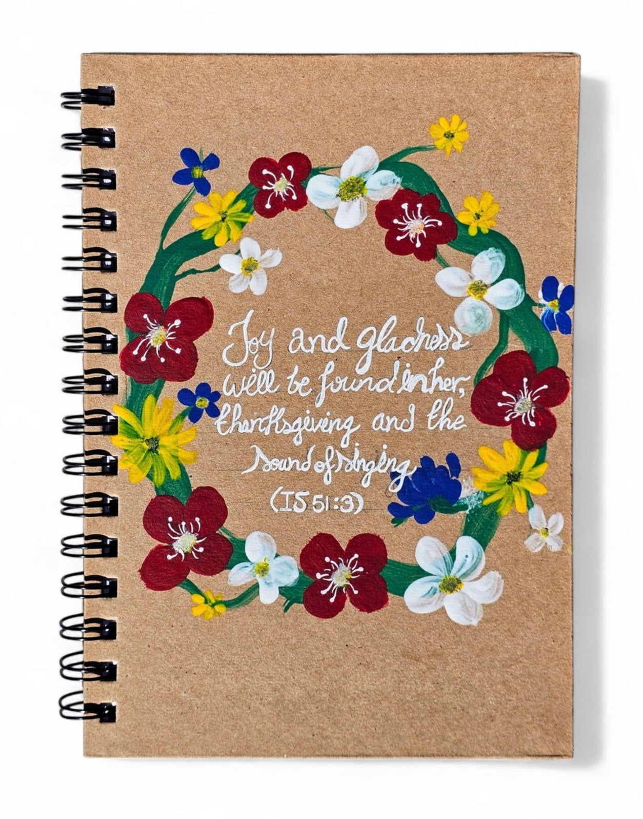 Capturez vos pensées, vos idées et vos réflexions créatives avec ce journal personnalisé peint à la main avec une couronne de fleurs. Doté d'une charmante couronne de fleurs rouge vif sur la couverture et de 160 pages lignées à l'intérieur, ce carnet est parfait pour tenir un journal, faire des listes et plus encore. Un cadeau unique et significatif pour vous-même ou un être cher.
