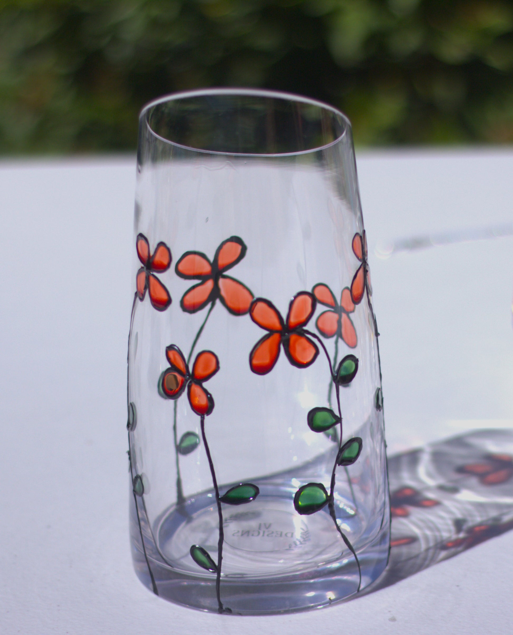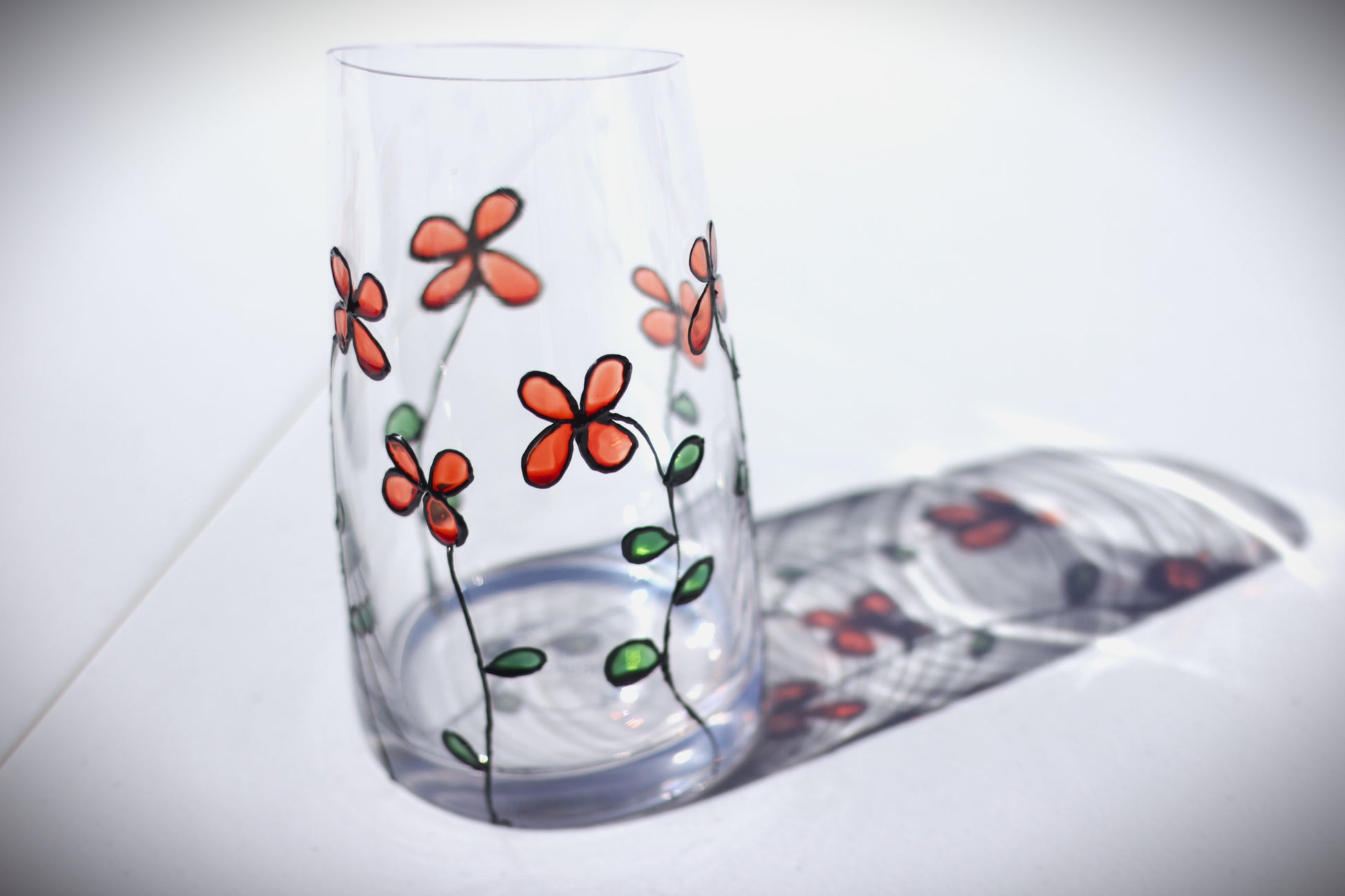 Vase en verre peint à la main personnalisé avec des fleurs rouges