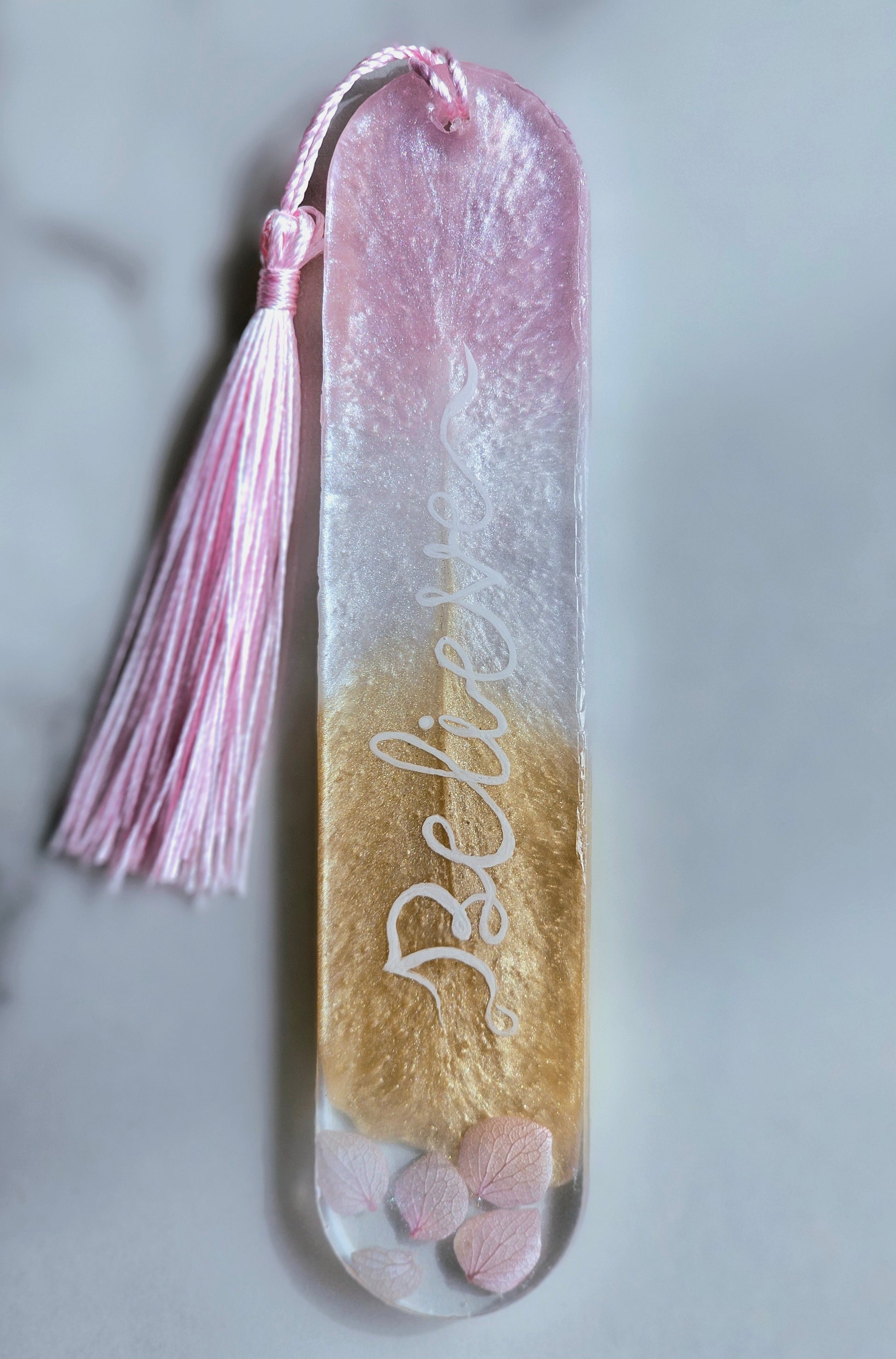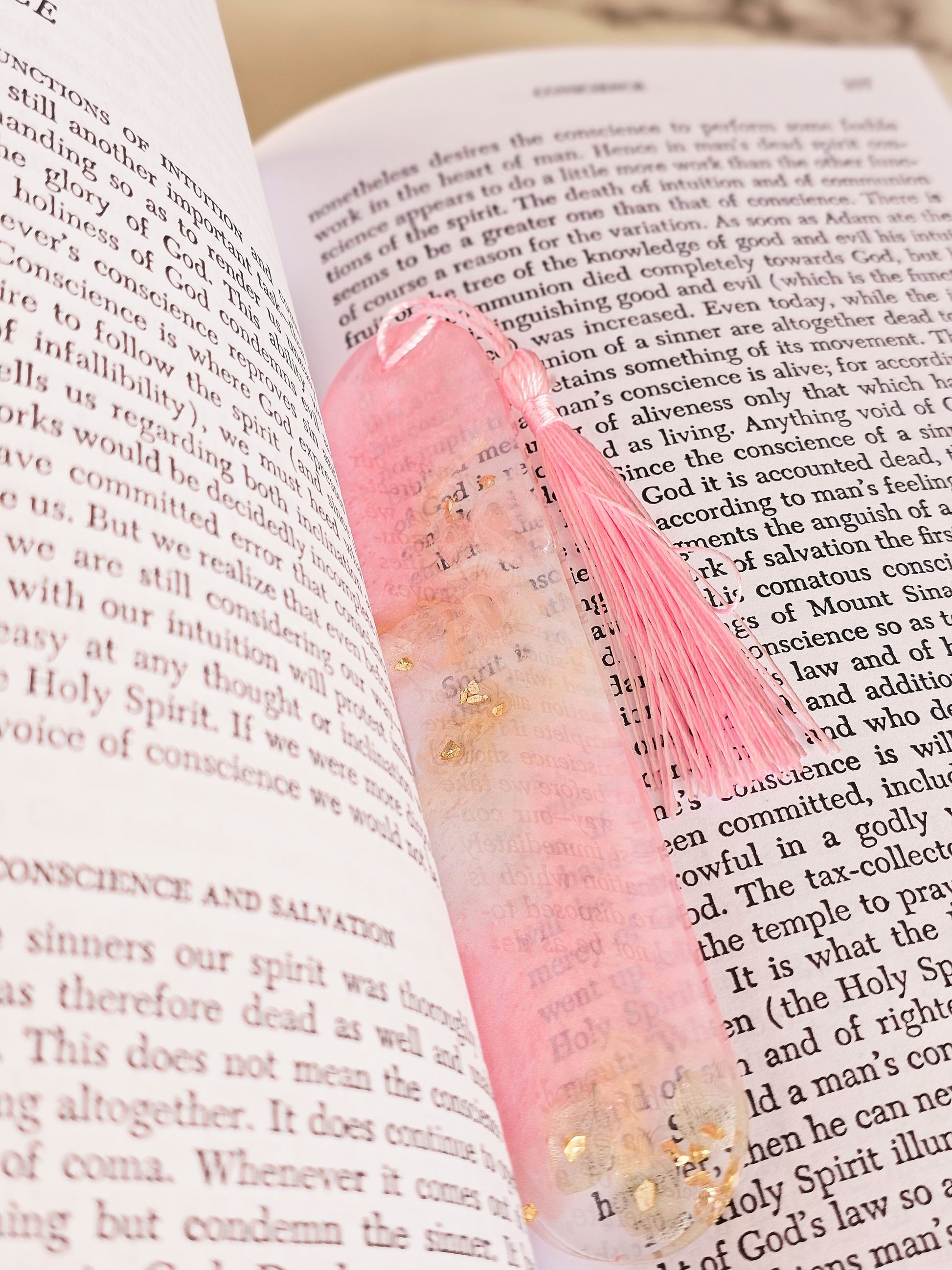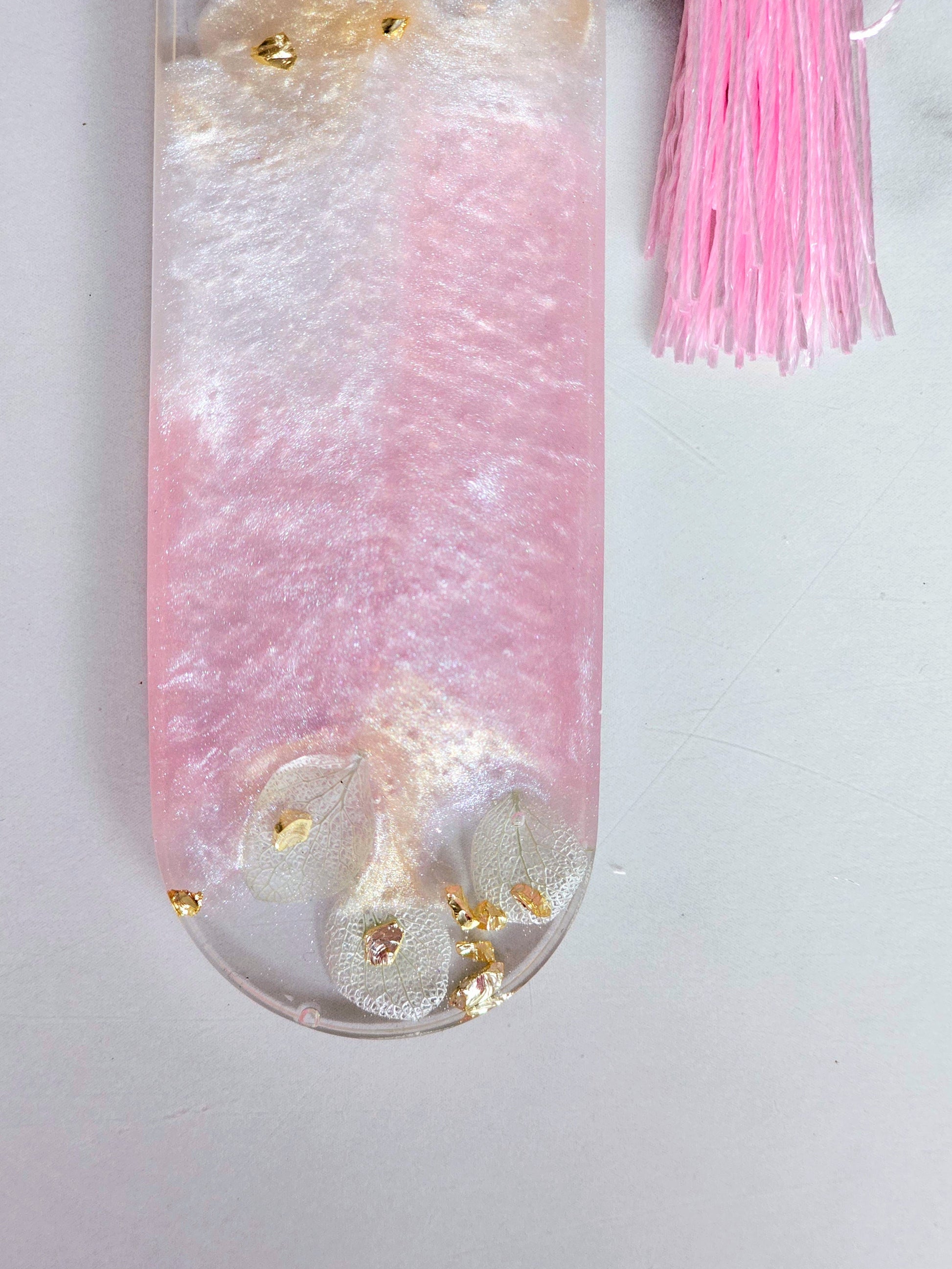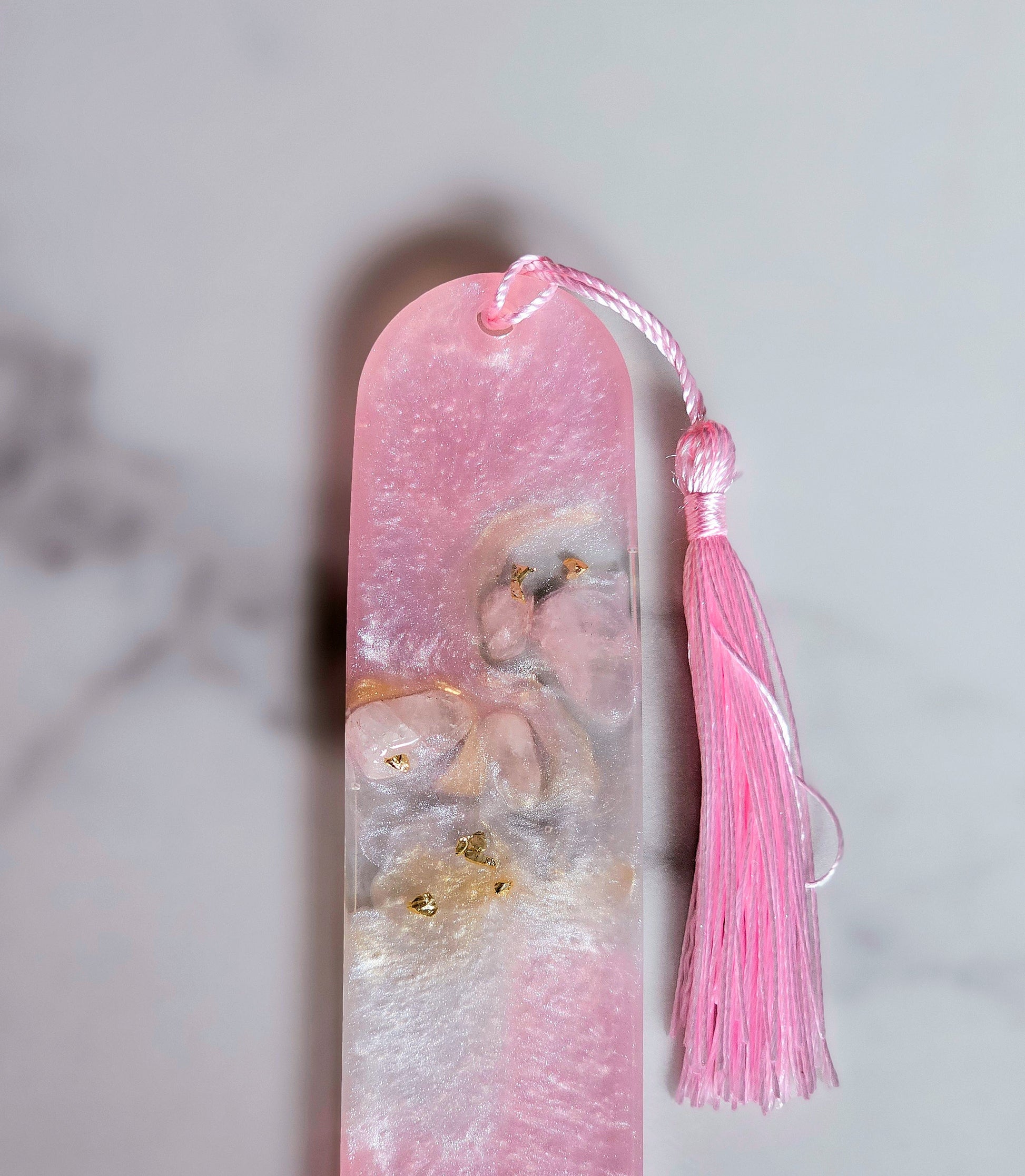 Découvrez nos marque-pages roses personnalisés faits à la main, le complément parfait à la collection de tout amateur de livres. Laissez-vous tenter par le design exquis et élégant, avec une résine pleine de passion enrobée de rose et de blanc. Chaque pièce unique est ornée de cristaux roses et de véritables pétales de fleurs séchées et d'un délicat pompon de votre choix.