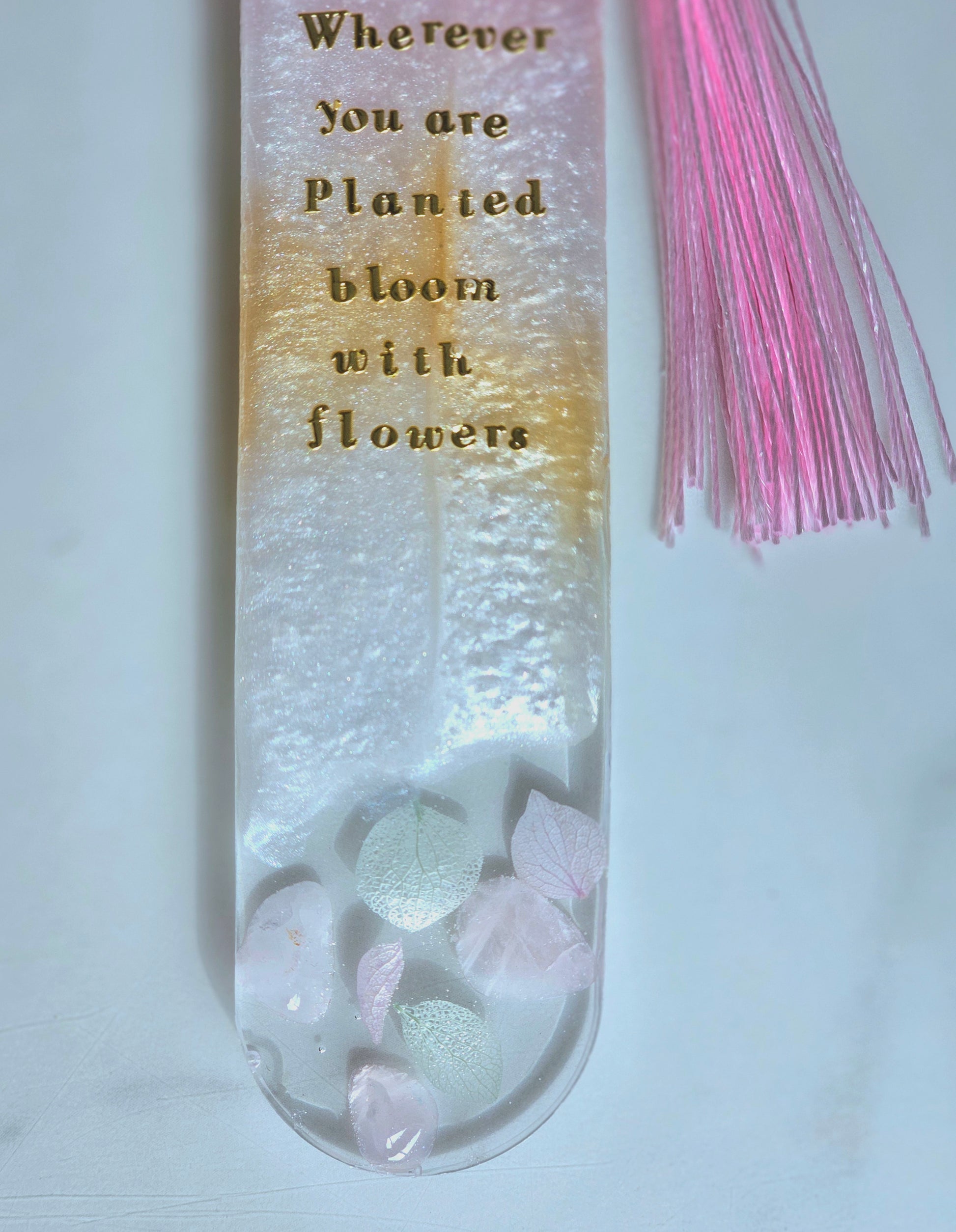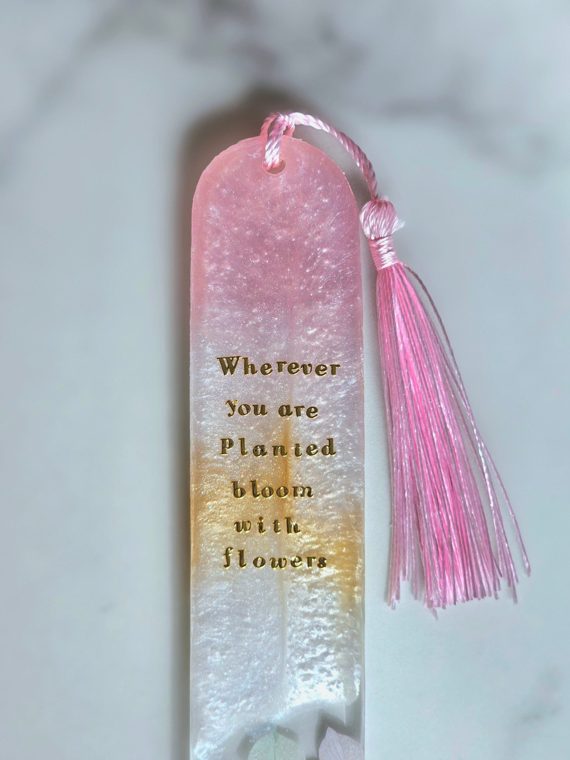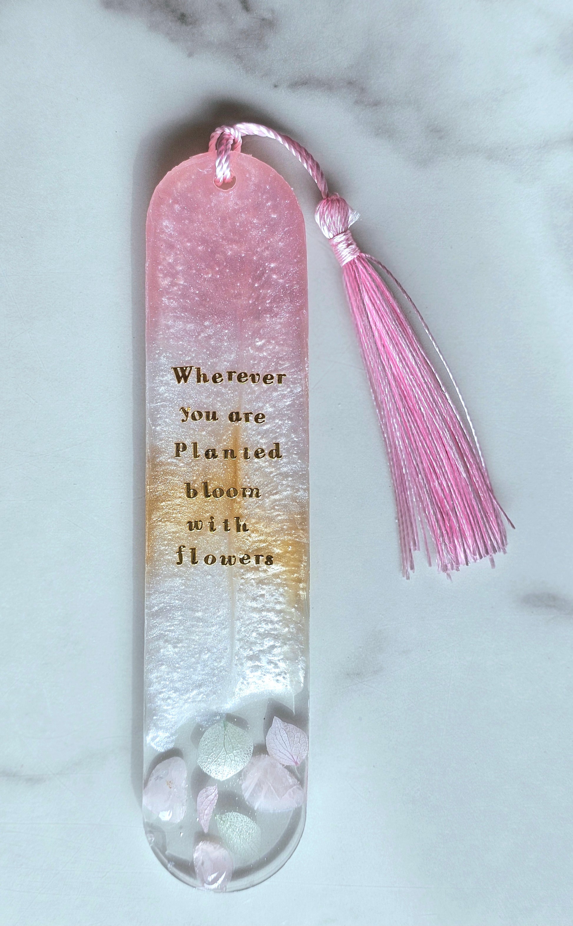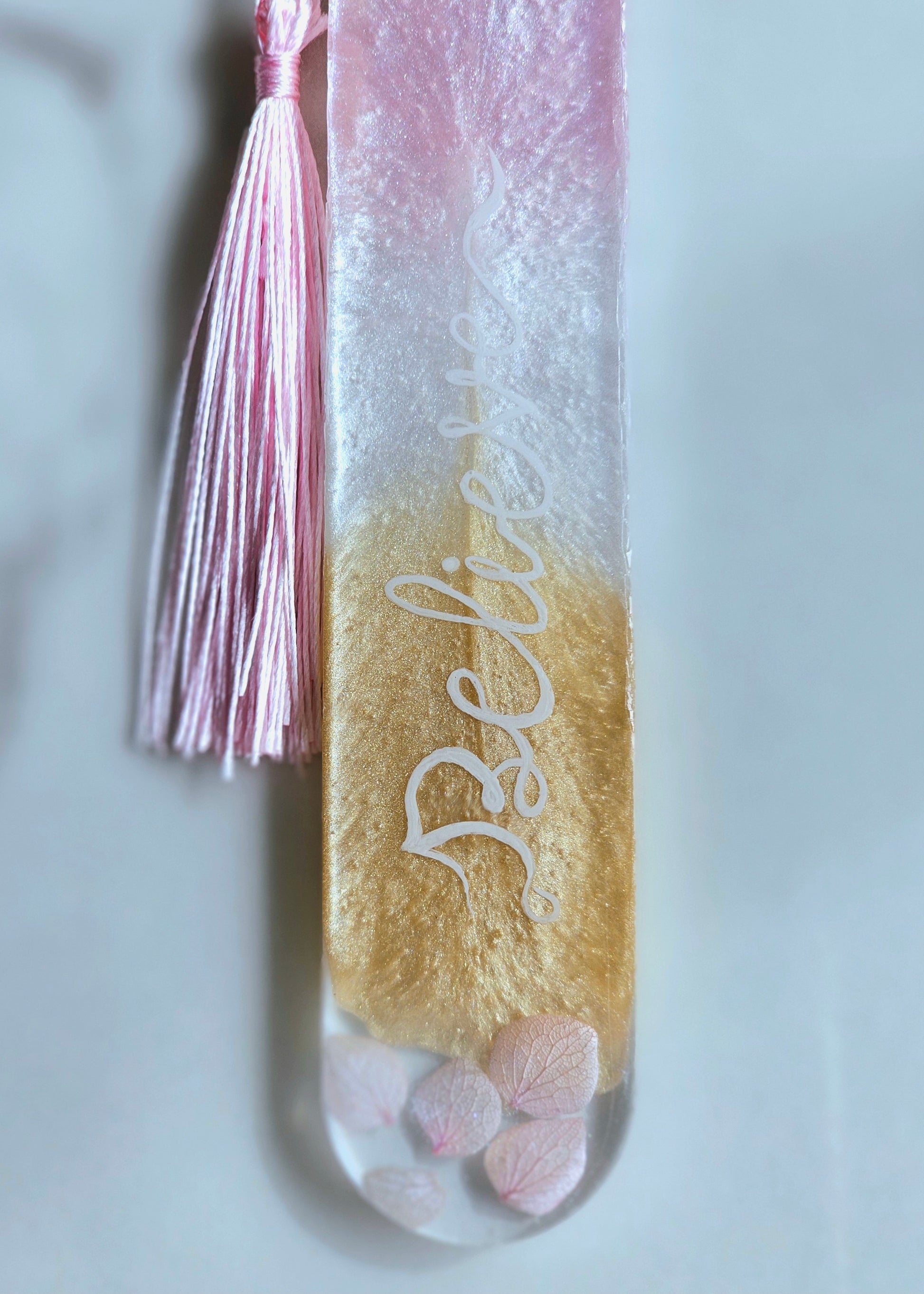 Découvrez nos marque-pages roses personnalisés faits à la main, le complément parfait à la collection de tout amateur de livres. Laissez-vous tenter par le design exquis et élégant, avec une résine pleine de passion enrobée de rose et de blanc. Chaque pièce unique est ornée de cristaux roses et de véritables pétales de fleurs séchées et d'un délicat pompon de votre choix.