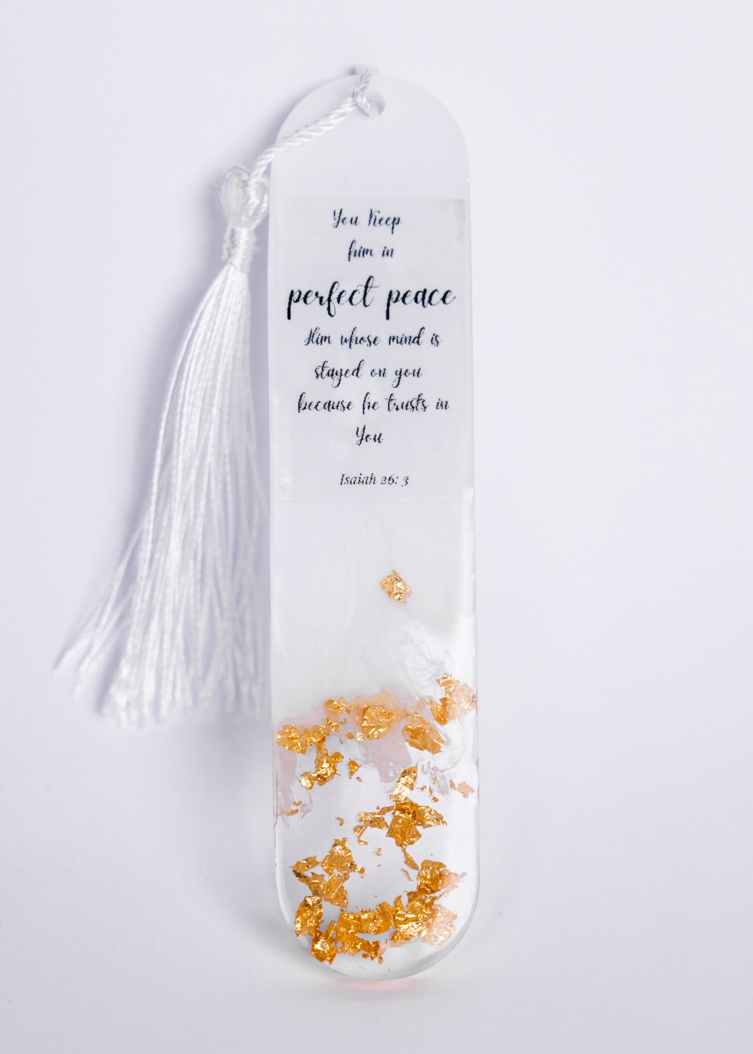 White and Gold Resin Bookmark – Elegant Handmade Gift