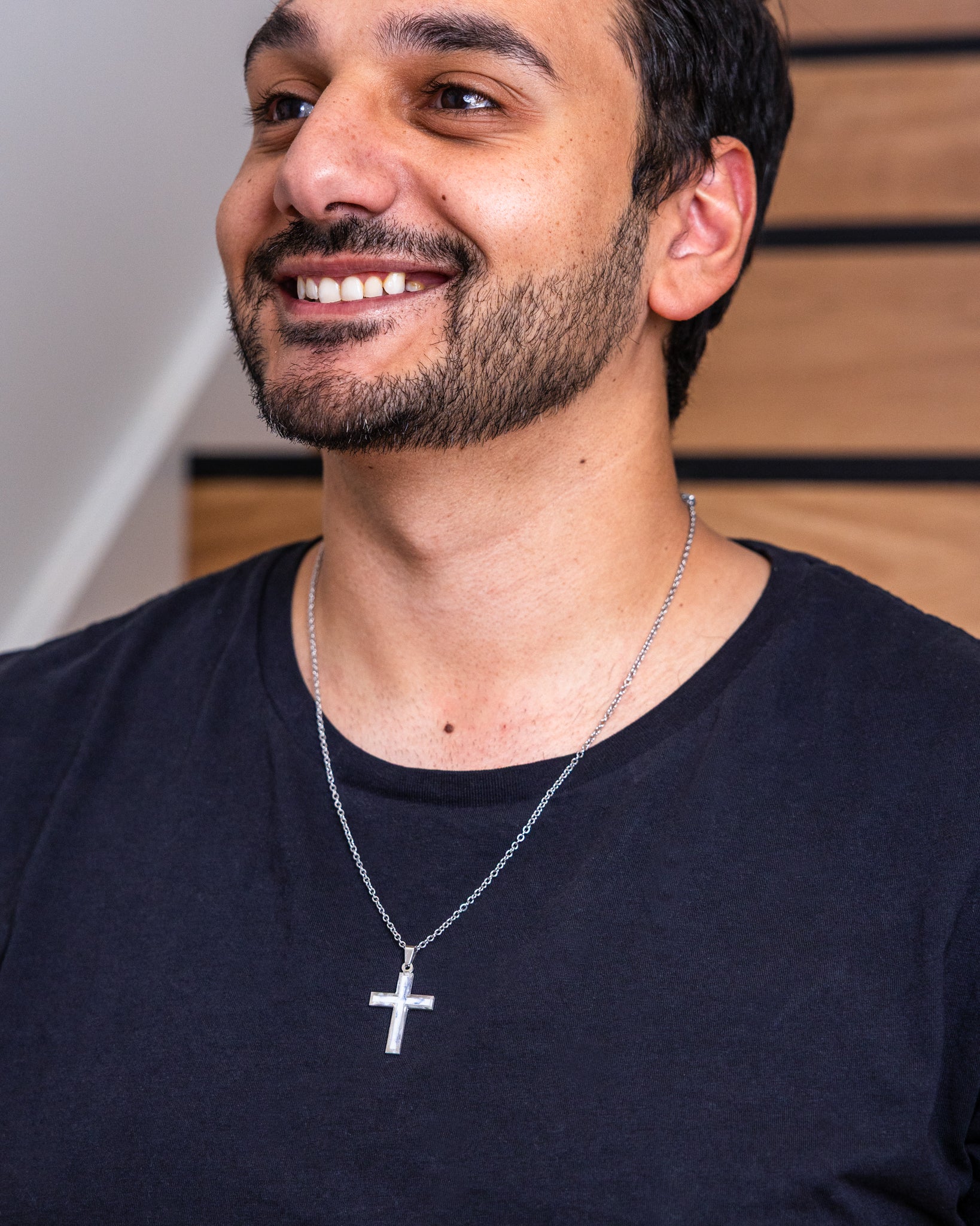 This stainless steel cross necklace for men is water resistant, making it ideal for use while showering or spending time at the pool or beach.