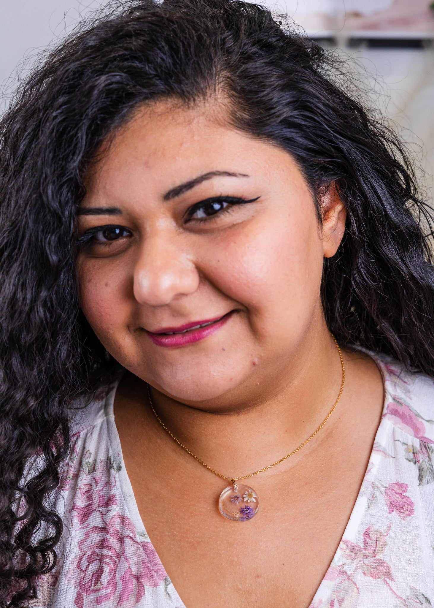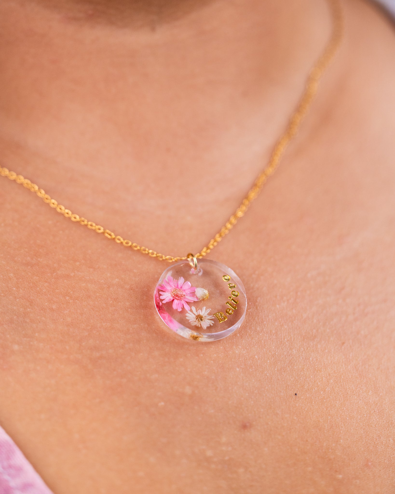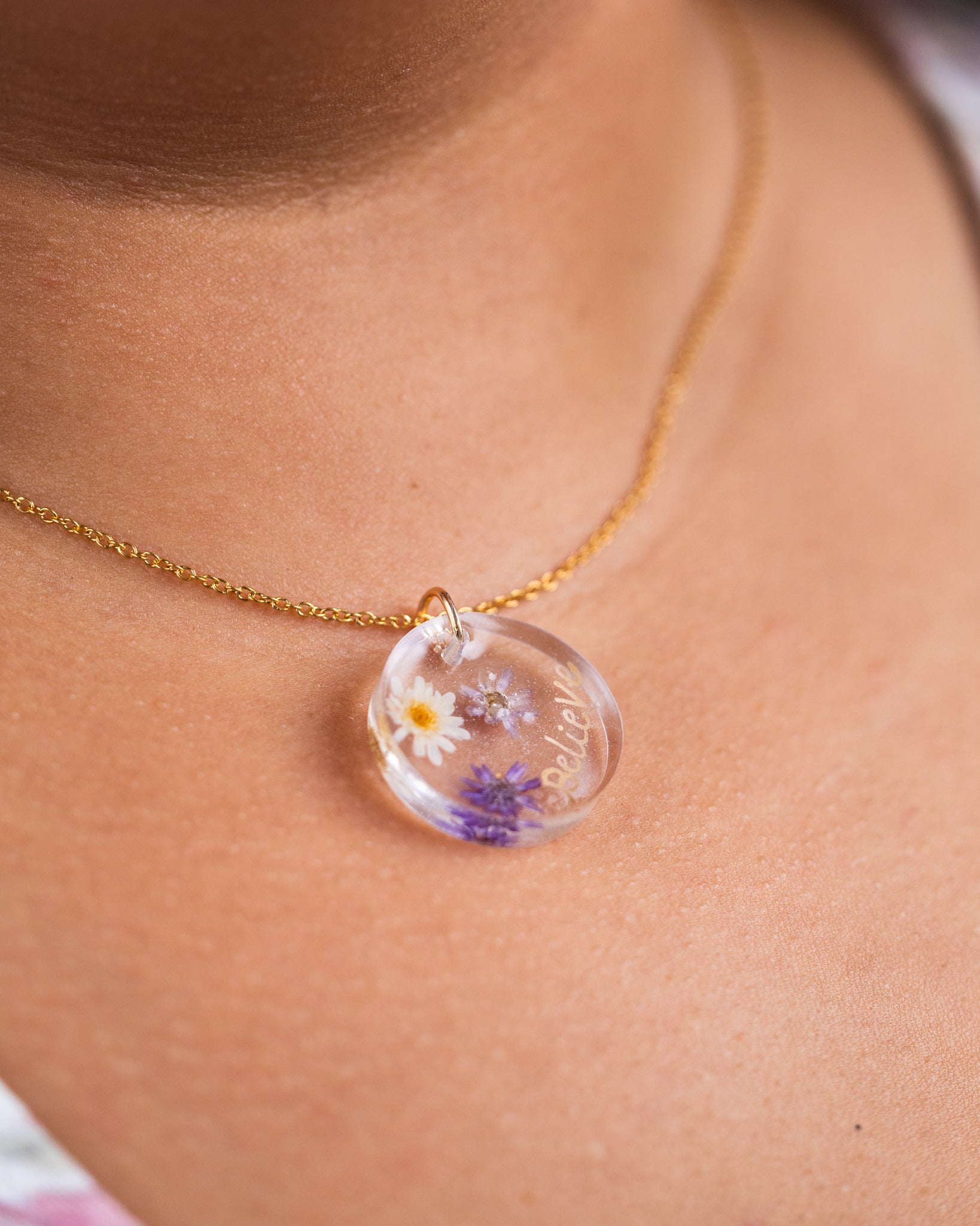Personalised Gold-Plated Resin Necklace with Real Dried Flowers