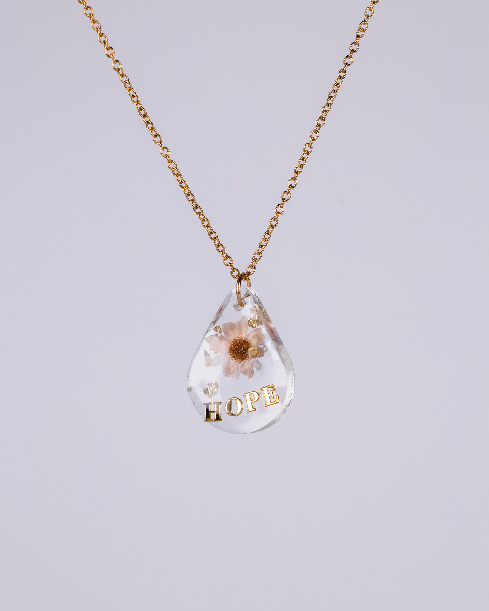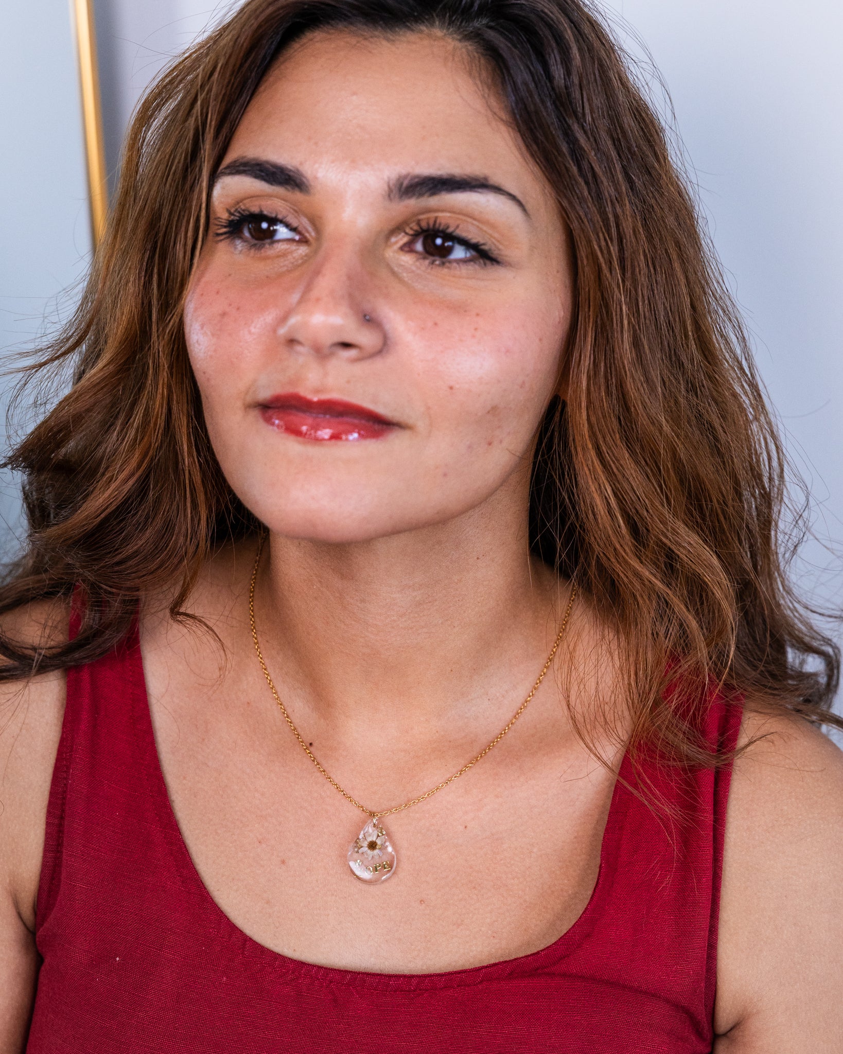 This finely handcrafted necklace features a teardrop pendant decorated with authentic baby flowers, making it a graceful gift for someone special. Made from premium gold-plated 316 surgical stainless steel, it guarantees hypoallergenic comfort and lasting durability.