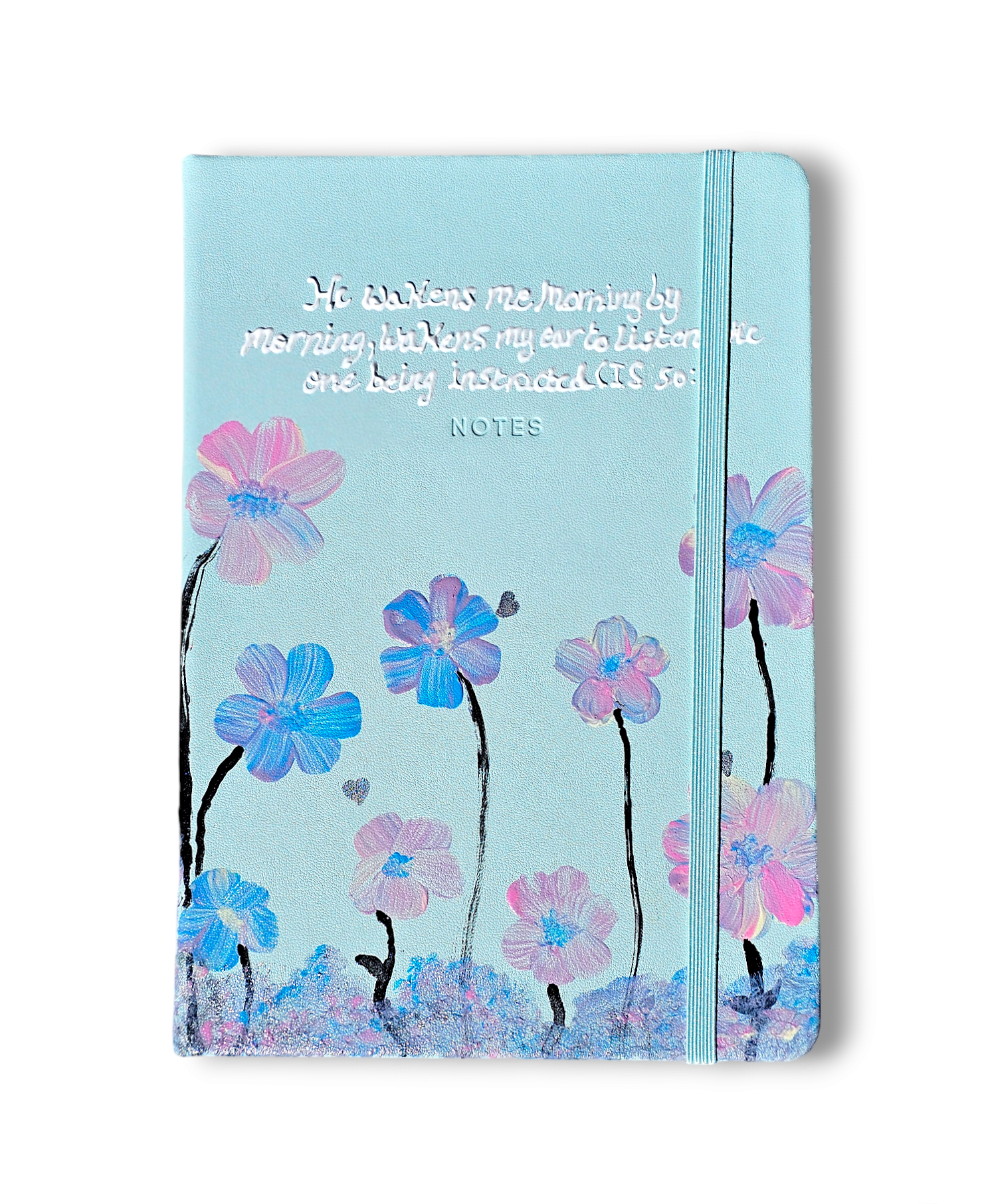 Get creative with this personalized hand-painted mint green journal! Featuring a unique vibrant floral design which adds a special touch to your everyday journaling experience. With high-quality hard cover and papers, this journal makes the perfect gift for a loved one.