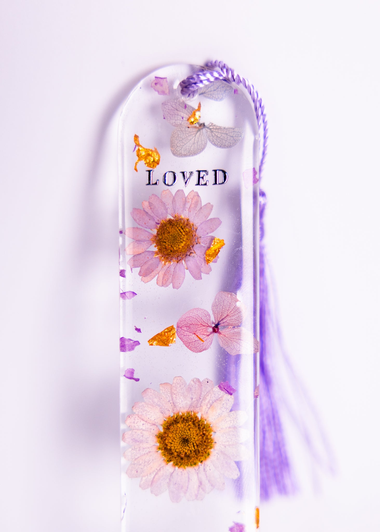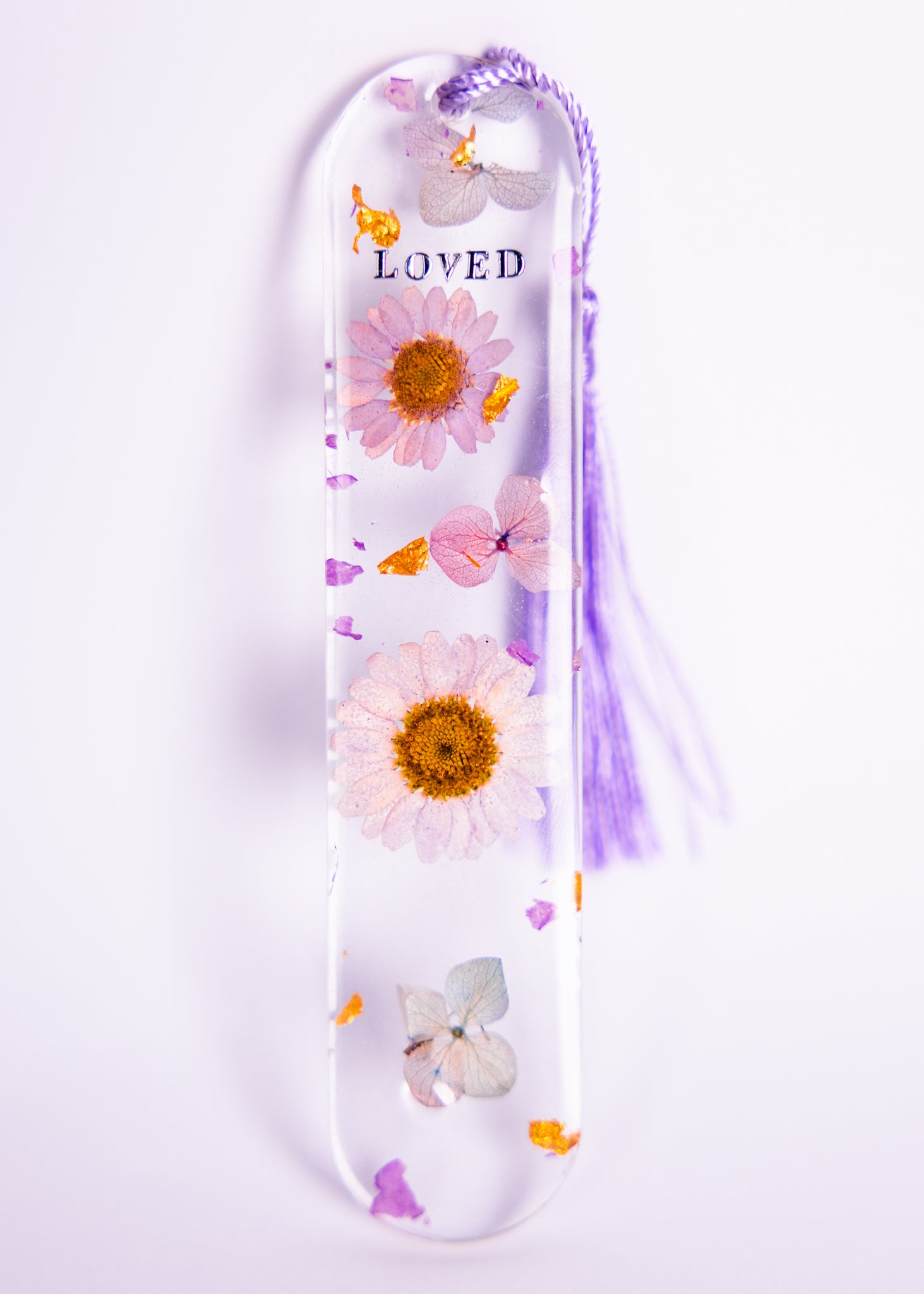 This elegant bookmark features a preserved purple daisy set in crystal-clear resin. Handmade in the Adelaide Hills, each piece is unique and perfect as a personalised gift for readers, teachers, or nature lovers. Add a touch of floral charm to your reading routine with this one-of-a-kind piece.